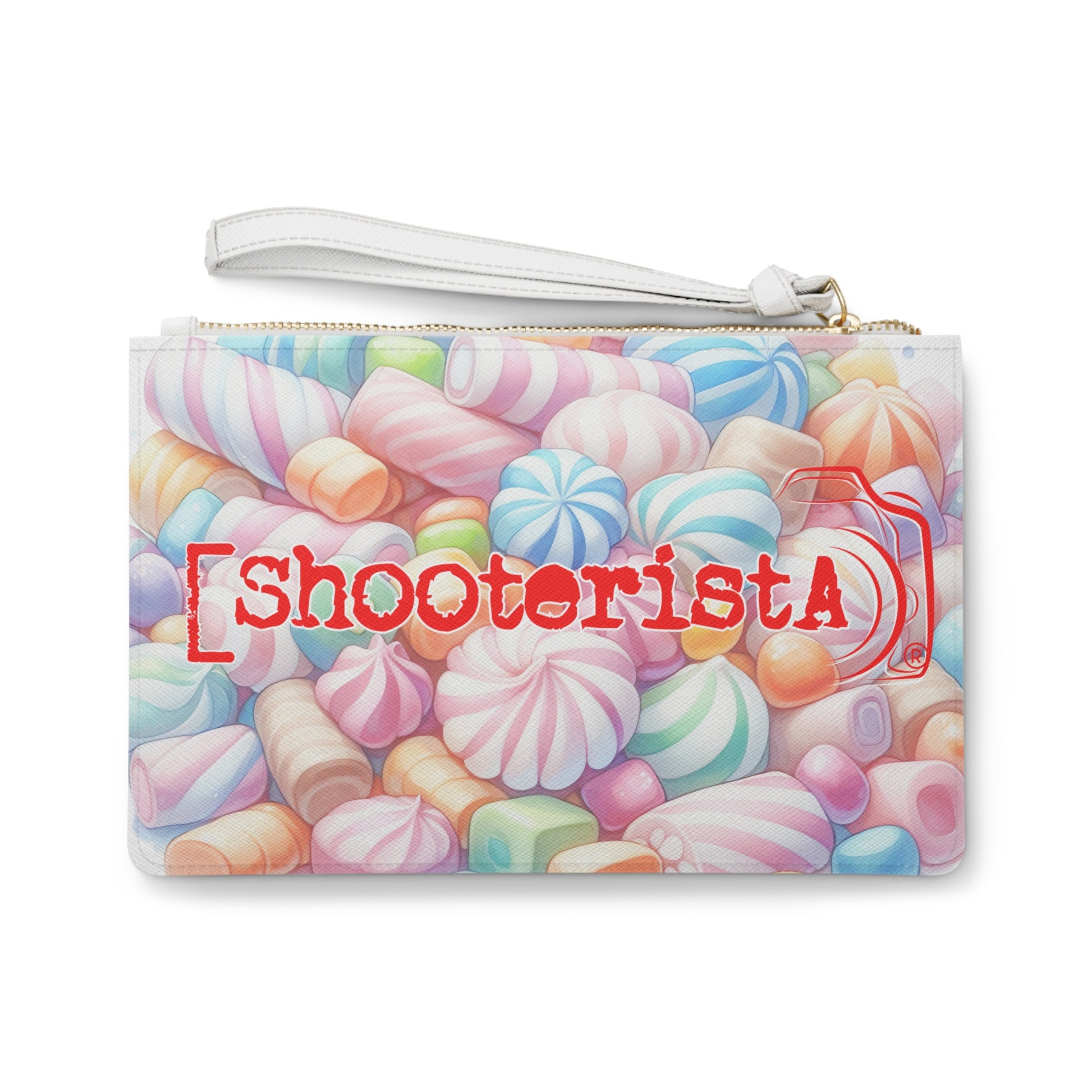 Progettata con un manico ad anello per liberare rapidamente le mani, questa pochette personalizzata con marshmallow è perfetta per la Shooterista sempre in movimento. Può contenere gli oggetti essenziali di tutti i giorni come Trucchi e pennelli. Presenta una chiusura a zip e una tasca interna completamente foderata. È realizzata in pelle vegana con finitura Saffiano, inventata da Prada.