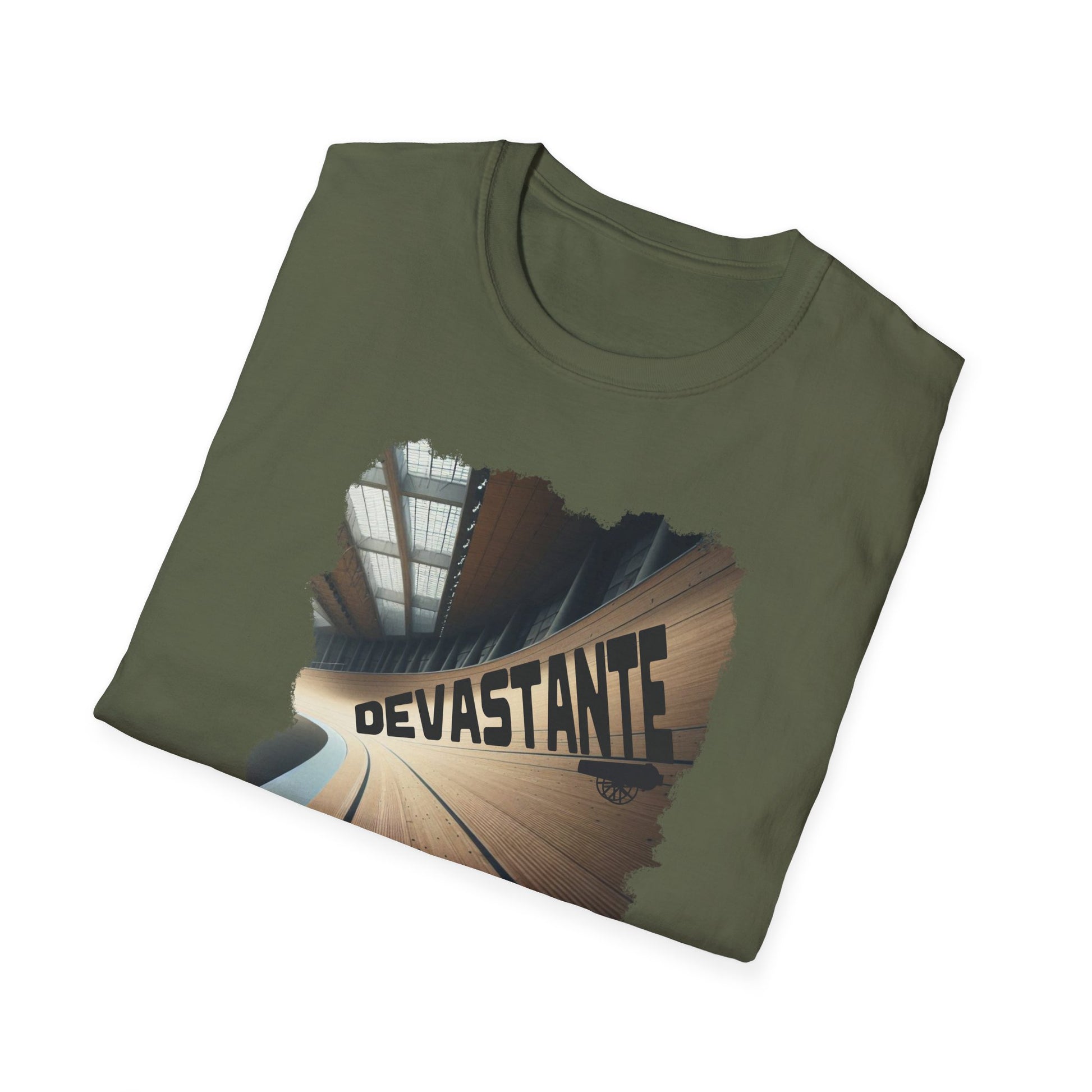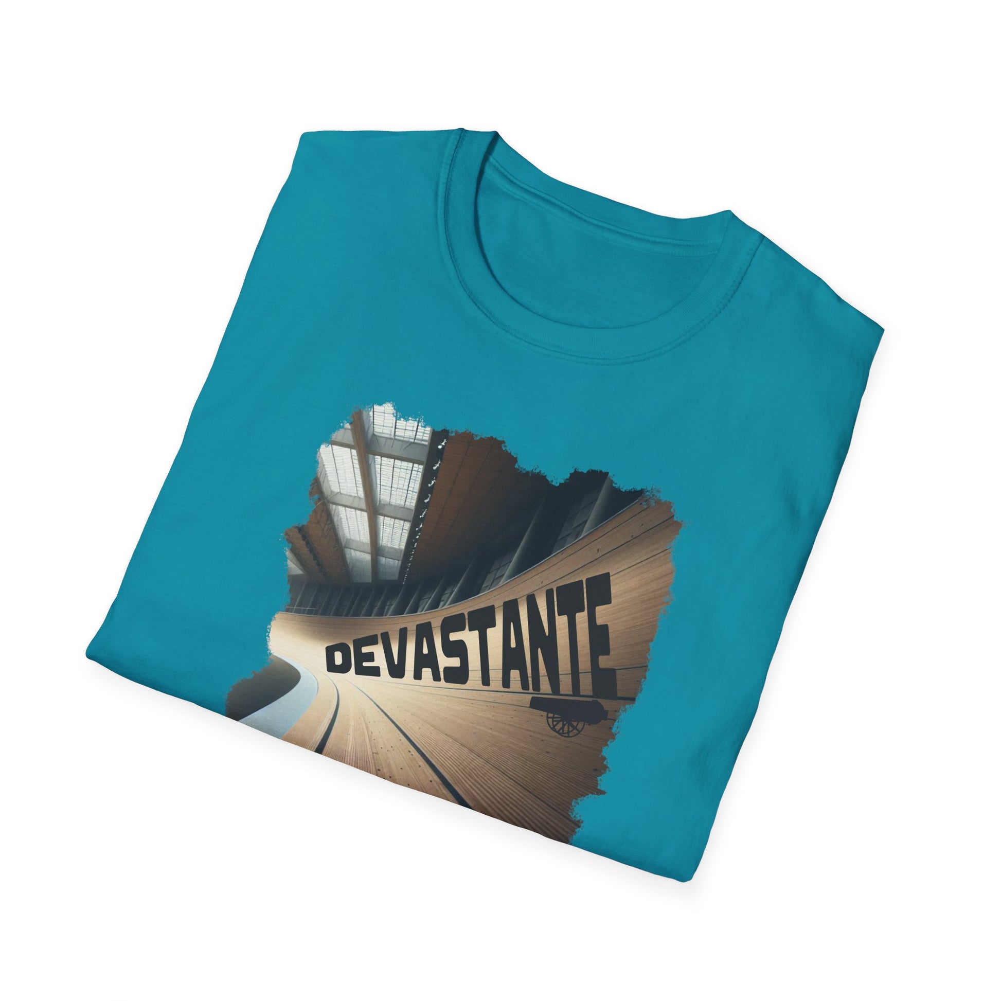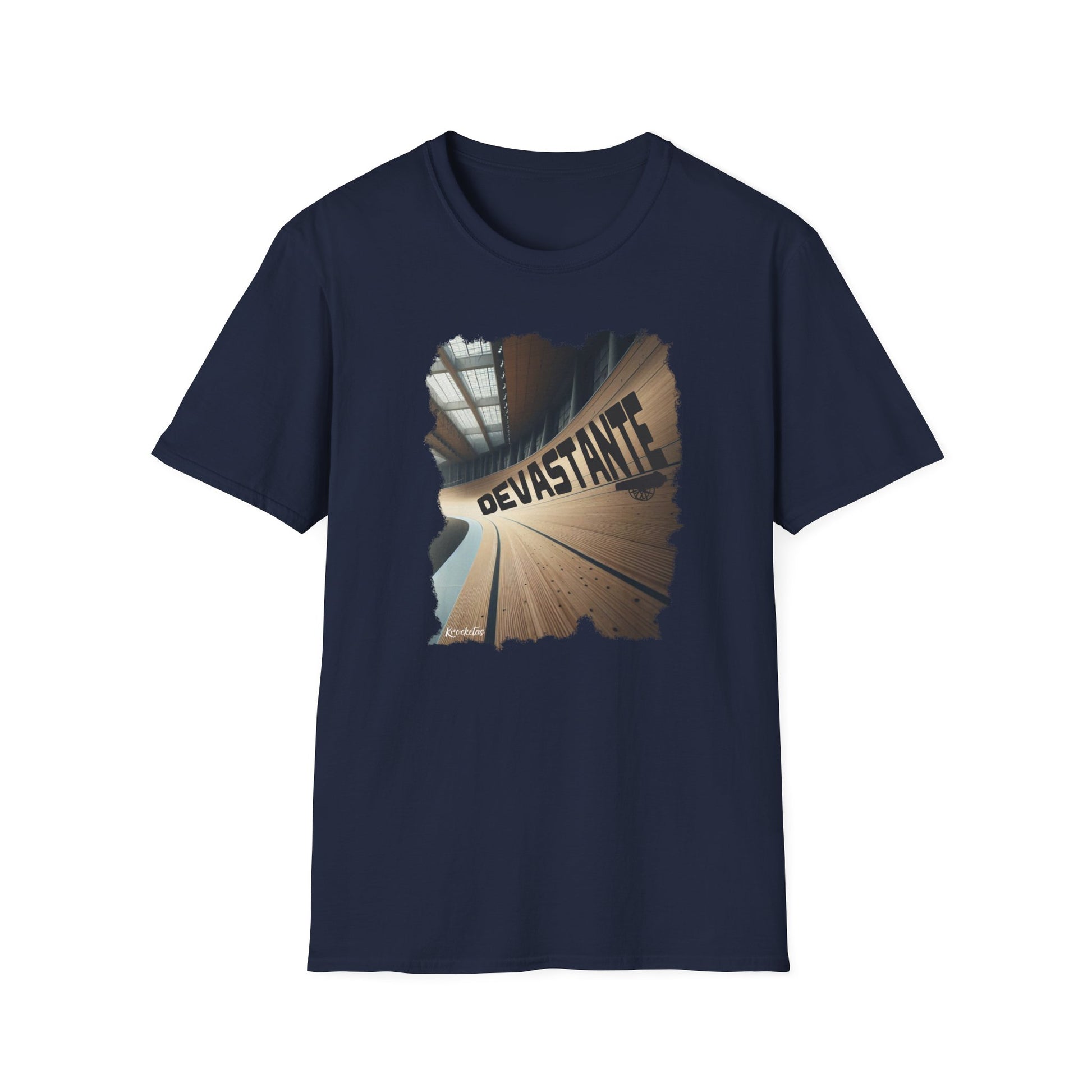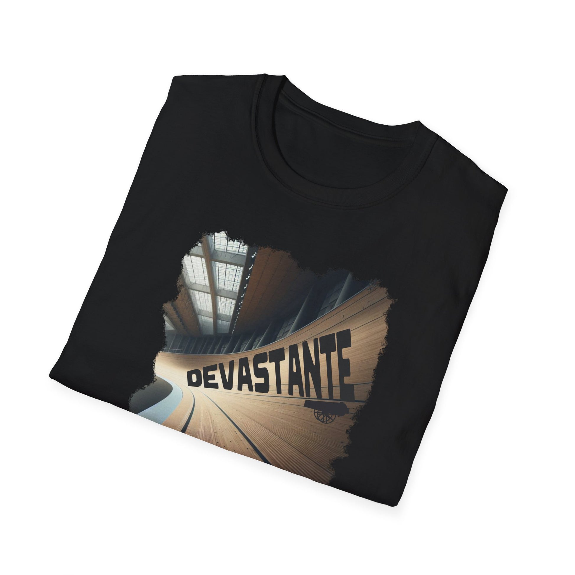 T-Shirt Ciclismo su Pista con citazione "Devastante" del grande Marco Cannone commentatore di Eurosport ed Ex Pistard.