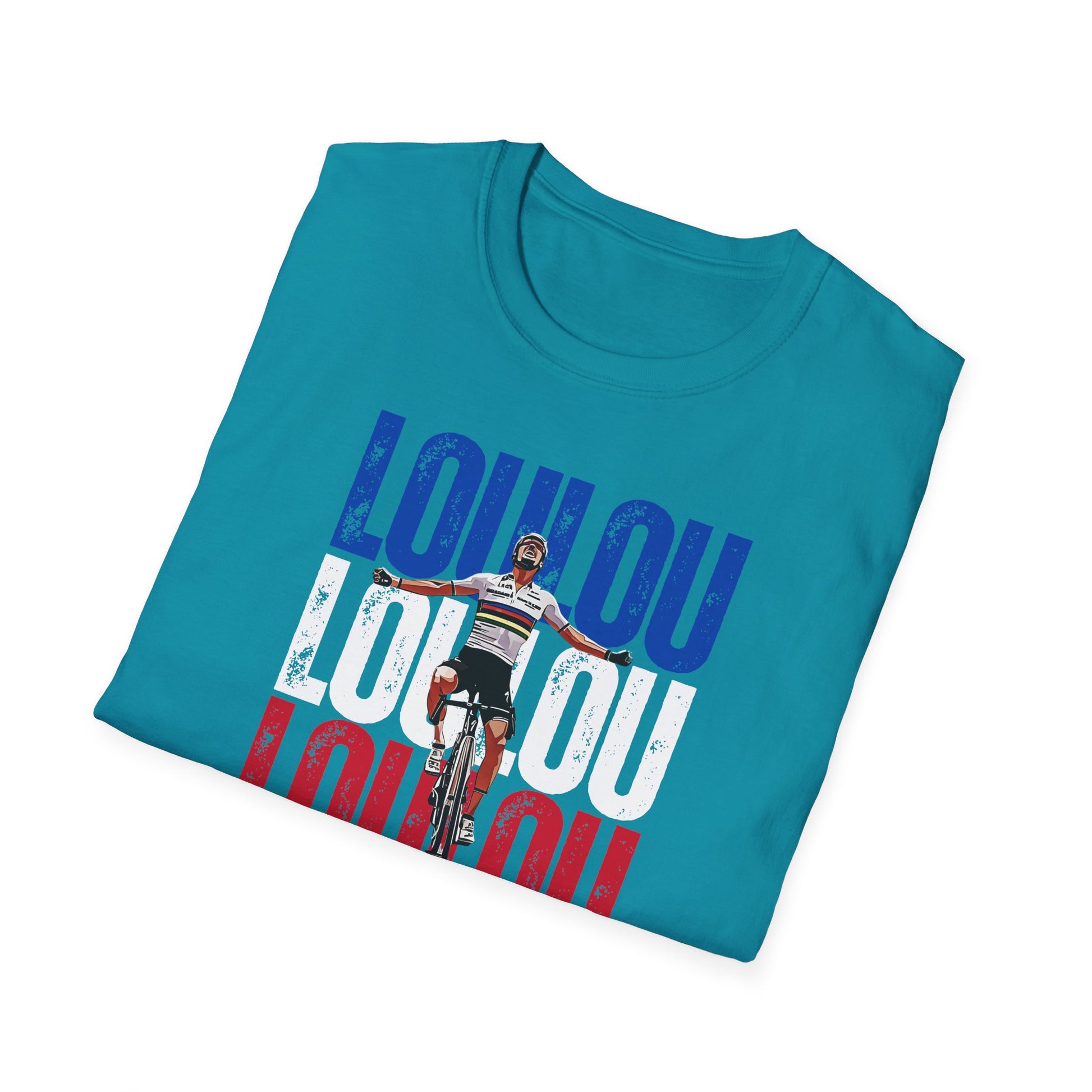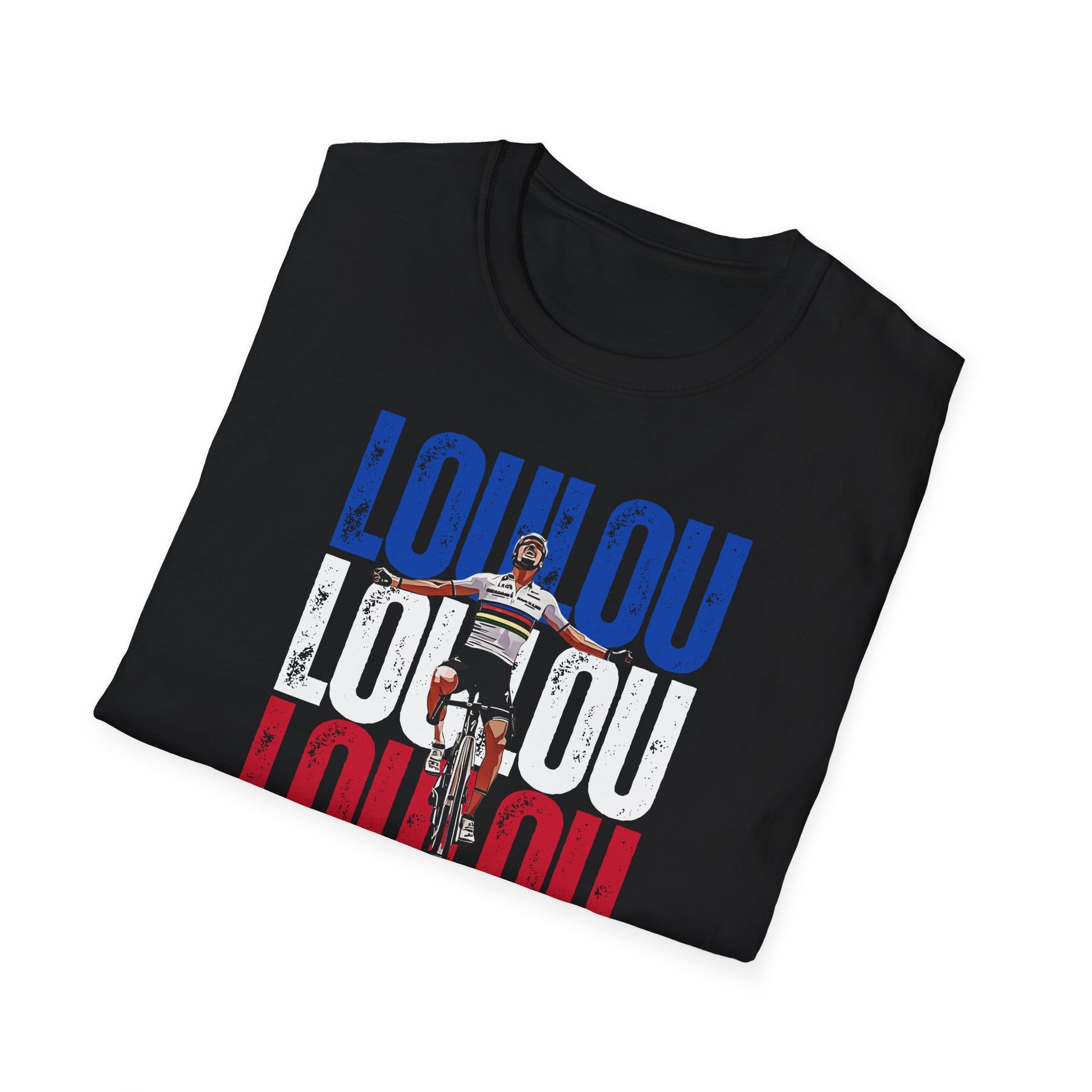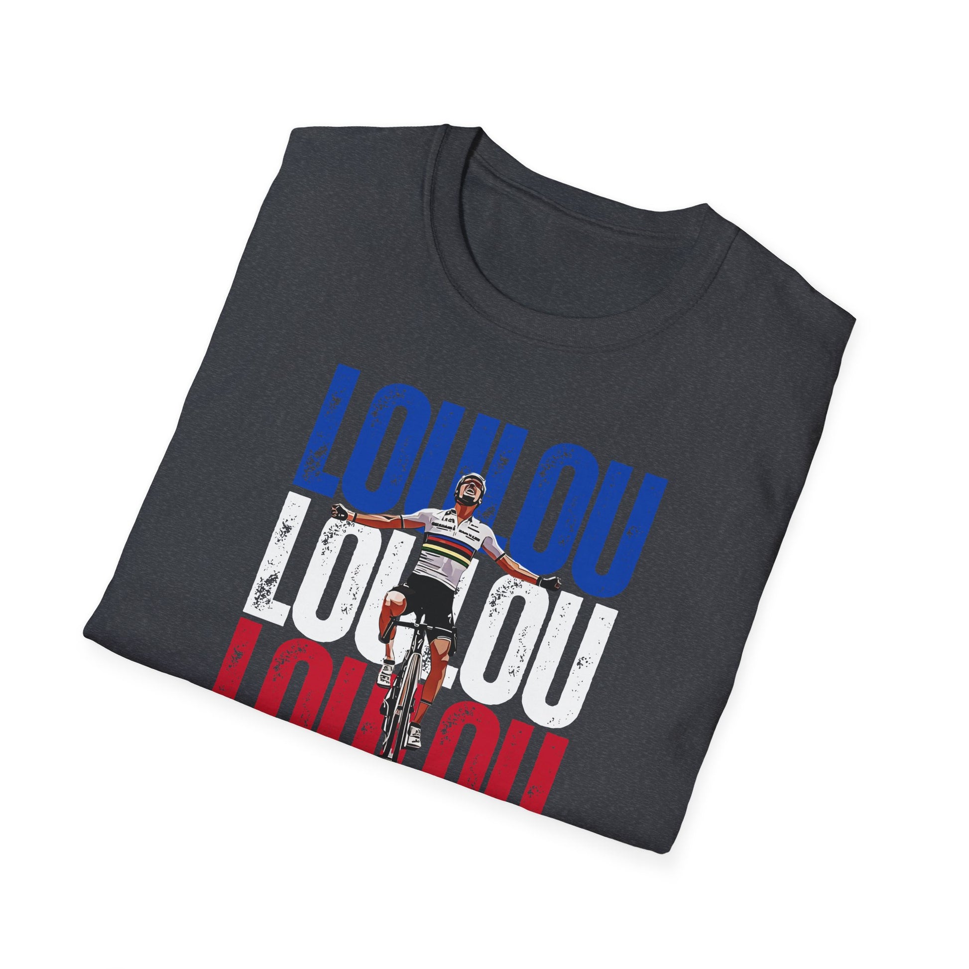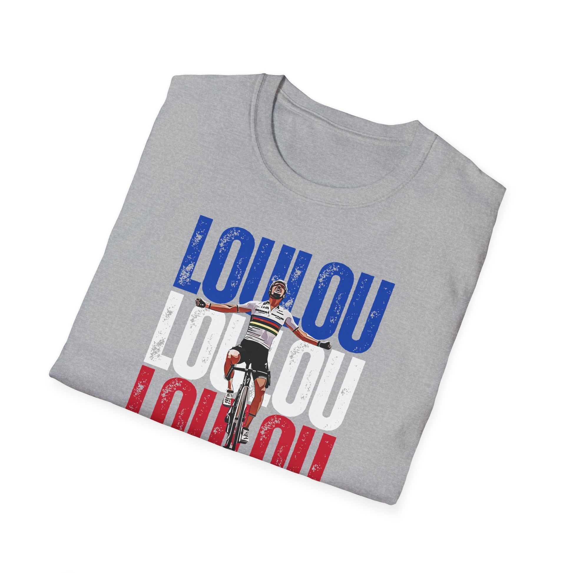 Questa T-shirt "Loulou Alaphilippe" è l'ideale per chi vive con passione il ciclismo e apprezza il coraggio e lo stile combattivo di Julian Alaphilippe. Indossala con orgoglio mentre segui le grandi classiche o le tappe più emozionanti del Tour de France!